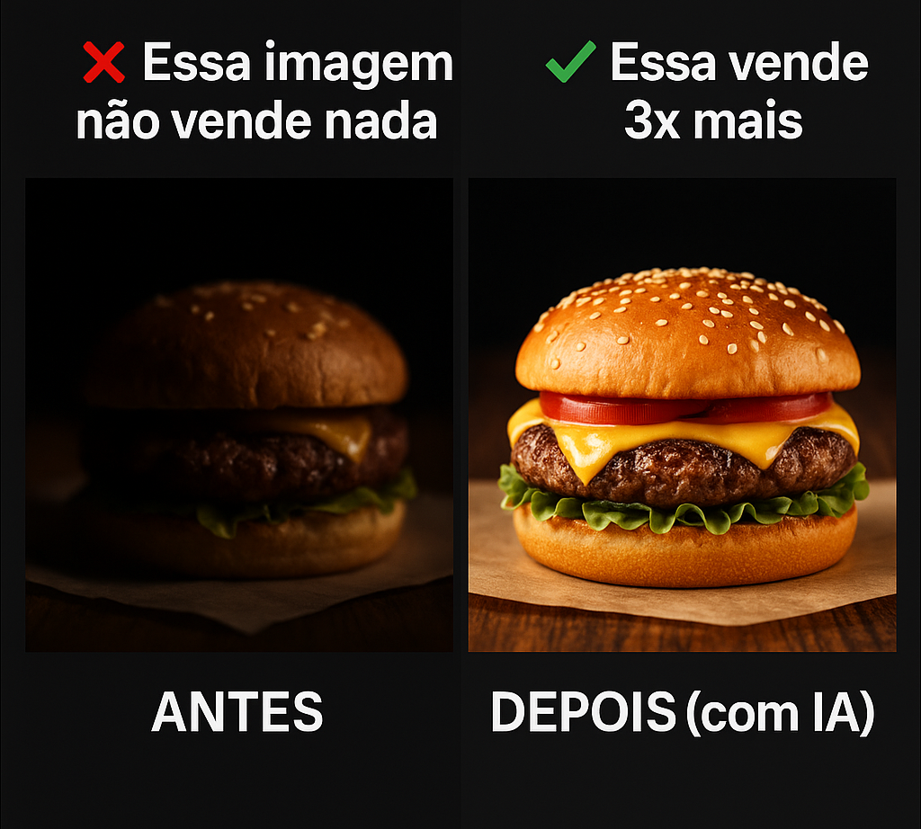 Método prático para transformar imagens comuns em visuais que vendem no iFood, OLX e Instagram — e vender isso como serviço.